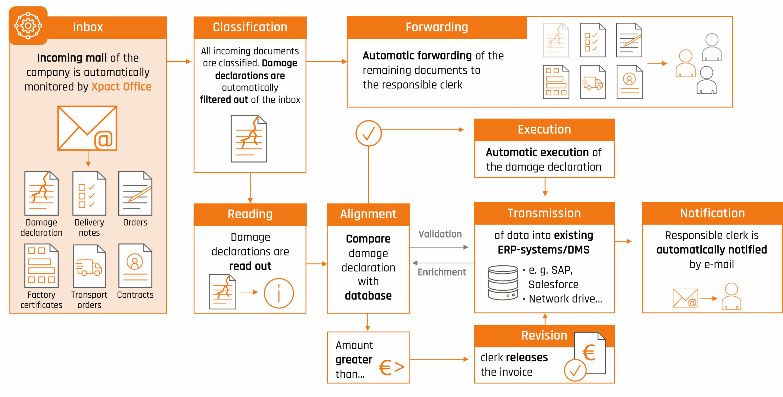 All relevant information is then read out and stored in your existing IT system.